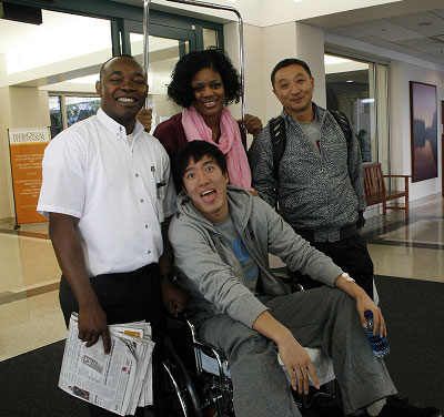 休斯敦當地時間6日11點,教練孫海平和田管中心副主任馮樹勇率先走出了赫曼紀念醫院,而孫海平的手上還提著一副拐杖,那本來是劉翔手術后用來輔助行走的。
