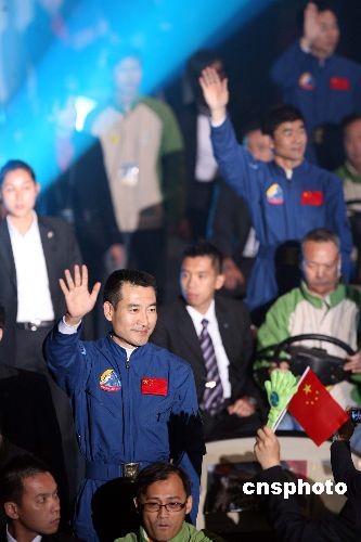十二月九日晚,澳門舉行“航天英雄·情系濠江”晚會,歡迎“神舟七號”載人航天飛行代表團一行。