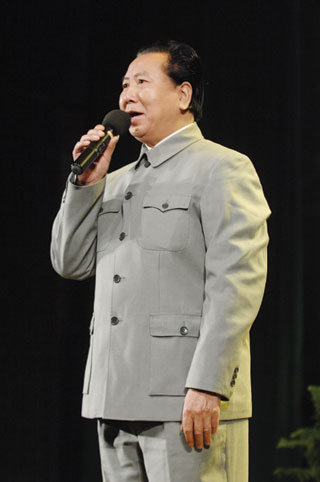 湘鄉人王金生是首個登臺進行表演的特型演員,他一上臺就模仿毛澤東在開國大典時的經典講話!巴緜兒谩,王金生的“主席”口音一出,立馬將現場氣氛推向高潮,“主席好!”臺下觀眾熱情的配合,“人民萬歲——”,“毛主席萬歲!”作為“開場戲”,王金生成功地帶動了現場觀眾,達到很好的互動效果。