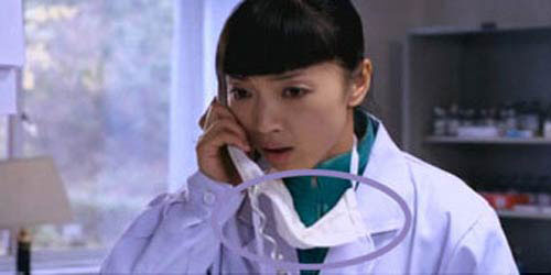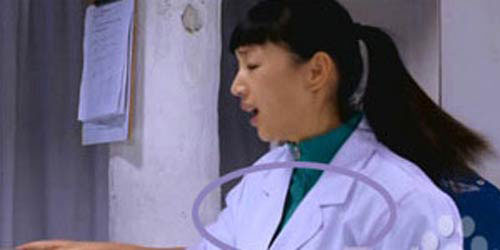 實習醫生打電話問主治醫生何時來醫院,脖子上掛著口罩。打完電話口罩突然不見了。《超強臺風》攜帶超強穿幫襲擊電影市場。