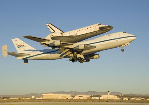 組圖:奮進(jìn)號(hào)“騎”波音747貨機(jī)回家