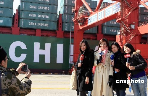 臺灣美女記者熱觀兩岸海運直航