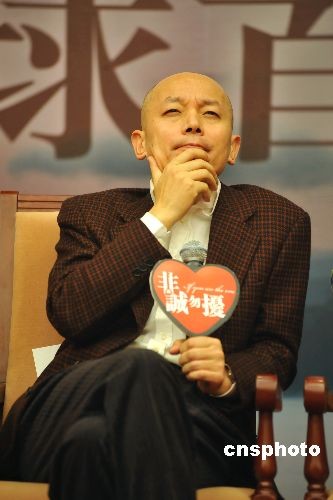 12月16日,馮小剛賀歲喜劇《非誠(chéng)勿擾》在北京召開(kāi)首映發(fā)布會(huì)。圖為葛優(yōu)在發(fā)布會(huì)現(xiàn)場(chǎng)表情搞怪。中新社發(fā) 李學(xué)仕 攝