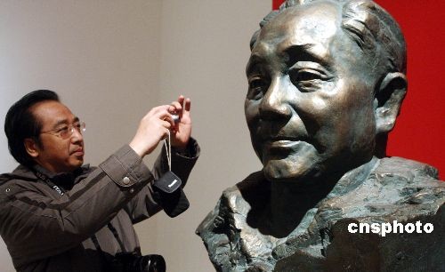 圖為著名雕塑藝術(shù)家程允賢的作品《鄧小平像》雕塑吸引參觀者。中新社發(fā) 錢(qián)興強(qiáng) 攝