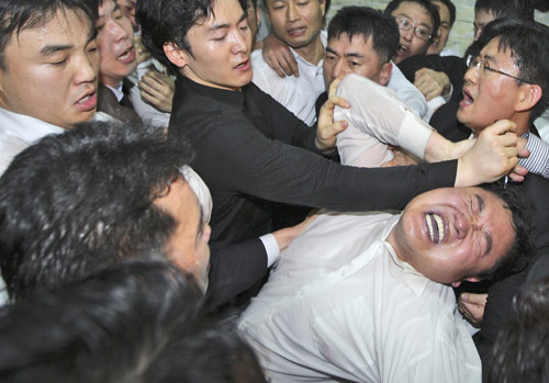 韓國議員爆沖突 使用滅火器當"武器"(2)