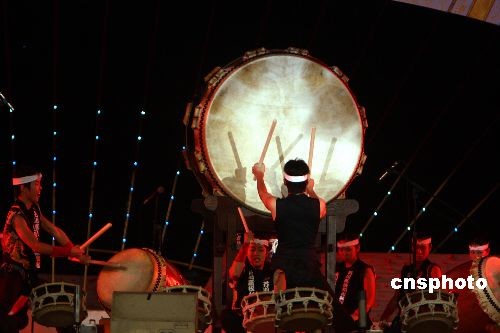 日本學子擊鼓助興中日青少年友好交流年閉幕式