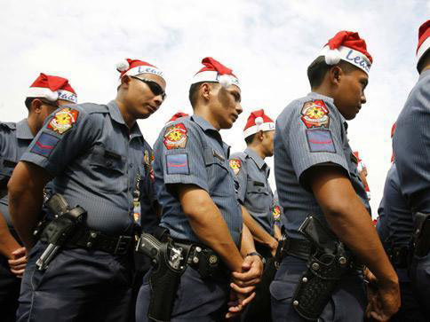 在菲律賓,治安警察都是一身圣誕老人的裝扮。