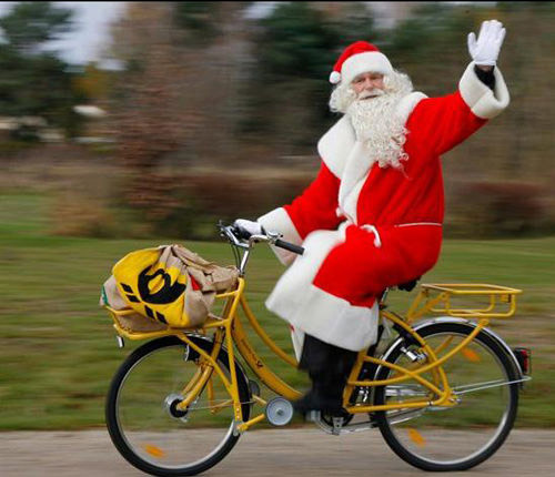 在德國勃蘭登堡,圣誕老人騎著自行車奔赴郵局。