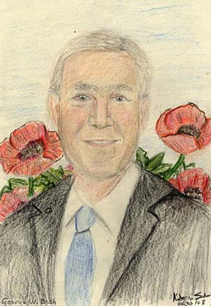 參賽作品中有一幅畫讓評(píng)委們印象深刻,這幅畫出自紐約10歲女孩卡特麗娜·薩德弗之手,她畫的是紅色背景下的總統(tǒng)布什。大紅色背景使得整幅畫讓人眼前一亮。