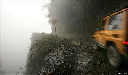 驚險度:地球上最危險的路,也被稱為“死亡之路” 。貫通40英里山路,最窄的地方只有10英尺,1000英尺的路是垂直沖入下面的熱帶雨林,而且還沒有護欄。