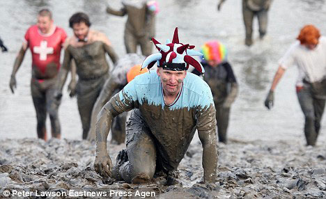 圖:英上演另類賽跑 選手泥漿中激情狂奔(2)