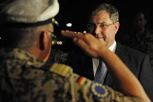 近日,德國國防部長弗朗茨·約瑟夫·容為參加歐盟領(lǐng)導(dǎo)的打擊海盜行動的德國官兵送行,此次行動德國派出了卡爾斯魯赫(Karlsruhe)號護(hù)衛(wèi)艦參與。