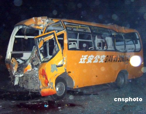 1月6日14時25分許,河北省遷安市發生一起重大交通事故。在遷安市祺光路與彭李路交叉口處,一名個體司機駕駛大貨車與遷安市公交公司13路公交車相撞,造成公交車兩名司乘人員當場死亡,在送往醫院途中死亡一人,經搶救無效死亡三人,另四名傷者正在醫院救治。 中新社發 翟羽佳 攝