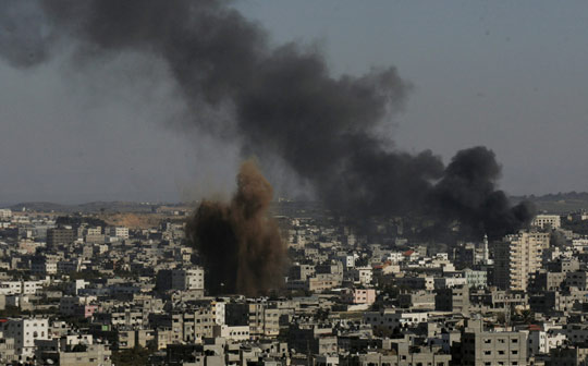 以軍1月6日攻擊加沙城郊,到處煙霧滾滾。以軍當天逼近加沙城人口密集區,并襲擊了一所聯合國學校。