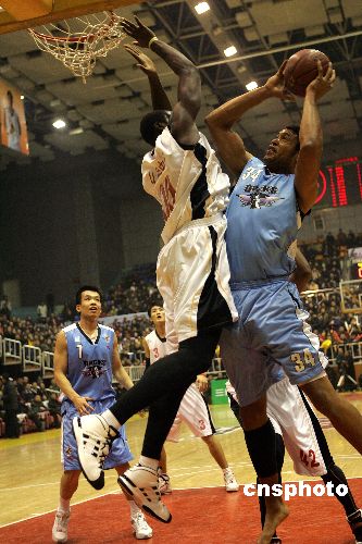 08-09CBA聯(lián)賽第二十三輪的比賽7日晚打響, 山西中宇主場(chǎng)迎戰(zhàn)北京金隅。 山西中宇憑借CBA第一外援邦奇·威爾斯出色發(fā)揮,以98:83擊敗了客場(chǎng)作戰(zhàn)的北京金隅。中新社發(fā) 張?jiān)?攝