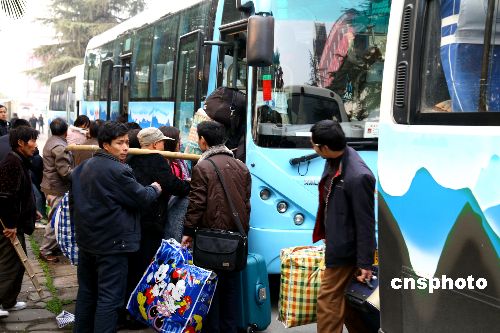 2009年1月8日,返鄉農民工乘船進川。從湖北宜昌港調度部門獲悉,三峽春運返鄉農民工高潮已提前到來,7日農民工進川約6000余人,創今年春運返鄉農民工首個高峰。中新社發 望作信 攝