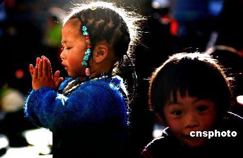 圖:拉薩大昭寺前虔誠的藏族孩童