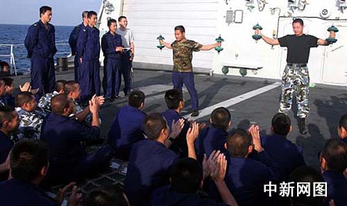 中新網“海口”艦1月9日電,中國海軍護航編隊“海口”號導彈驅逐艦舉行甲板運動會,以豐富官兵在護航期間的文體生活,甲板運動會共設六個比賽項目,分三個下午舉行,今天首場舉行啞鈴、臂力棒項目的比賽。