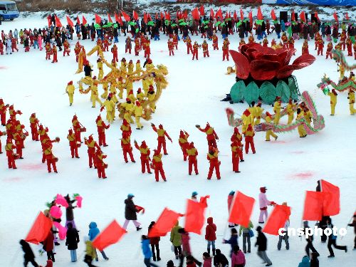 2009中國沈陽國際冰雪節(jié)準(zhǔn)備就緒,將于1月11日正式開幕。在開幕式預(yù)演上,幾百只由學(xué)生扮演的仙鶴成為最大亮點(diǎn),格外引人注目。