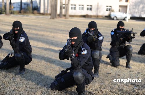 維和防暴隊員進行小隊戰術訓練。中新社發 由永懷 攝