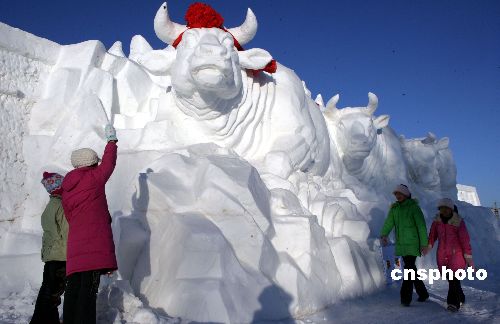 1月12日,以“冰情雪韻、和諧多倫”為主題的中國多倫諾爾冰雪節(jié)在內(nèi)蒙古多倫縣開幕,包括冰雪游園、大型冰雕雪雕展、冰燈花燈展等,冰雪景觀有100余件。游客欣賞冰雕、雪雕之余,還可了解多彩的民俗風(fēng)情和歷史文化。中新社發(fā) 趙雋 攝