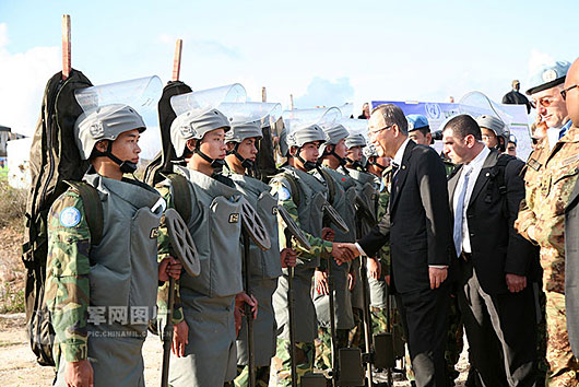 潘基文視察維和部隊(duì) 專程接見(jiàn)中國(guó)掃雷官兵(3)