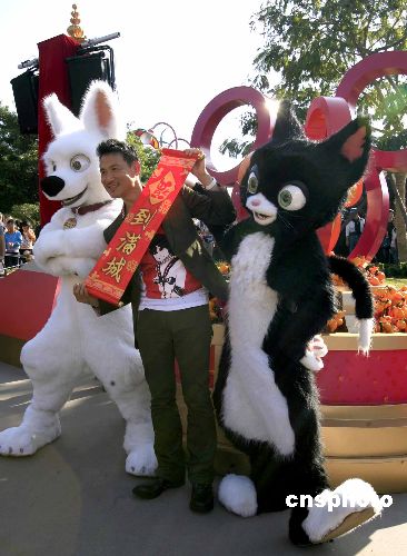 圖:張學友與卡通米奇香港迪士尼為來賓賀新年(2)