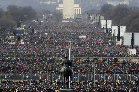 1月20日,在華盛頓,大批觀眾觀看奧巴馬就職典禮。
