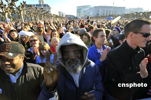 圖:舊金山民眾歡慶奧巴馬就任美國44任總統