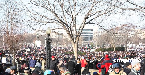 美國數十萬民眾冒著嚴寒到現場見證這一歷史性時刻。中新社發 李靜 攝