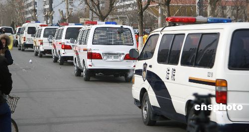 圖:三鹿系列刑案一審宣判 押解警車“排長龍”