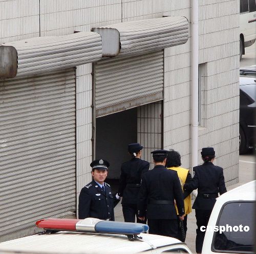 圖為三鹿集團原董事長田文華(黃衣者)被押送進入法院。中新社發(fā) 翟羽佳 攝