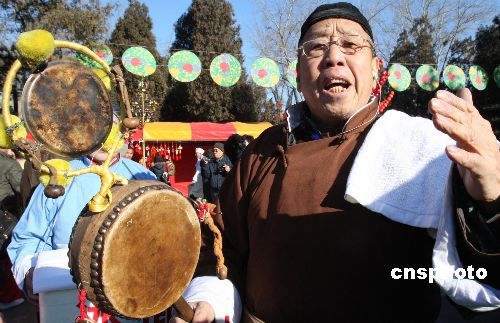著名的京城叫賣亮相地壇廟會。中新社發 錢興強 攝
