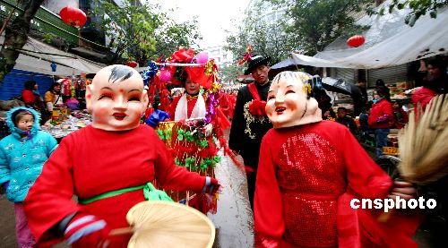 1月26日,雙石鎮群眾歡天喜地迎接新年到來。當日,重慶市永川區雙石鎮舉行“排街慶新年”活動,舞龍隊、腰鼓隊、車幺妹隊、彩旗隊等隊伍組成的排街隊伍,沿途邊舞、邊跳、邊作揖,用喜慶祥和的方式向全鎮群眾拜年。中新社發 陳仕川 攝