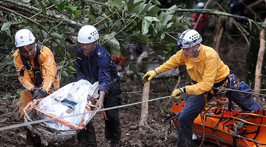 救援人員在運送遇難者的尸體。