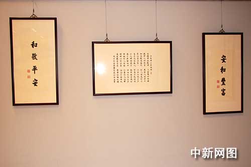 臺(tái)灣法鼓山創(chuàng)辦人圣嚴(yán)法師三日圓寂,四日移靈金山法鼓山世界佛教教育園區(qū)大殿供信眾瞻仰,圖為法鼓山現(xiàn)正展出的圣嚴(yán)法師墨寶。中新社記者:陳立宇 攝