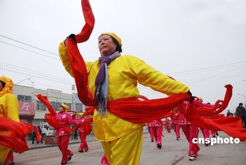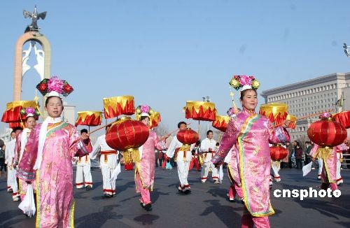 2月9日是元宵佳節(jié),山東省棗莊市山亭區(qū)各鄉(xiāng)鎮(zhèn)的農(nóng)民游藝隊開展民俗“游街”活動,高蹺、竹馬、舞龍等傳統(tǒng)民俗表演精彩紛呈。中新社發(fā) 劉明祥 攝