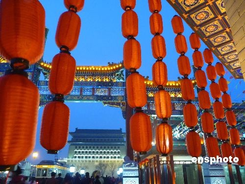 2009年2月8日,農歷正月十四,千余盞大紅燈籠及中國結將北京前門大街妝扮出濃郁的節日氣氛。中新社發 玉龍 攝