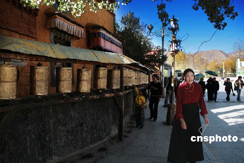 拉薩城的藏族姑娘。中新社發 扎西朗杰 攝