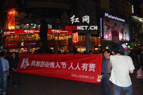 在長沙黃興南路步行街,記者還隨機找了家門口掛有情人節促銷活動招牌的店鋪,在獲悉記者來意后,一位李姓店長談了自己的看法。他表示:“網友組織這樣的活動,可能只是顯示下自己的個性吧。不過,我們可沒有在情人節那天有調高價格的計劃,相反還有一些降價促銷的活動,談不上靠節日撮錢的問題。這和其他節日一樣,我們只會在節日的時候讓消費者得到實惠,抵制真是吃飽了撐的!( 耿紅仁 周亦男)