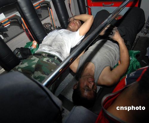 圖為13日凌晨3點多,疲倦的滅火消防官兵得以在消防車倉內休息片刻。中新社發 穆長梓 攝