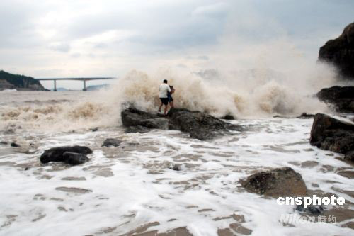 08年9月28日,受超強(qiáng)臺(tái)風(fēng)“薔薇”影響,浙江溫州市洞頭島海域已是波濤洶涌,海礁上掀起的巨浪高達(dá)10多米。下午2時(shí)許,一對(duì)外地父女在海邊游玩時(shí)不慎被突漲的潮水困在礁石上,隨時(shí)可能被海浪吞噬。正在海邊巡邏的洞頭邊防大隊(duì)官兵發(fā)現(xiàn)險(xiǎn)情后,迅速展開(kāi)緊急營(yíng)救,成功將父女從海浪中安全救上岸。