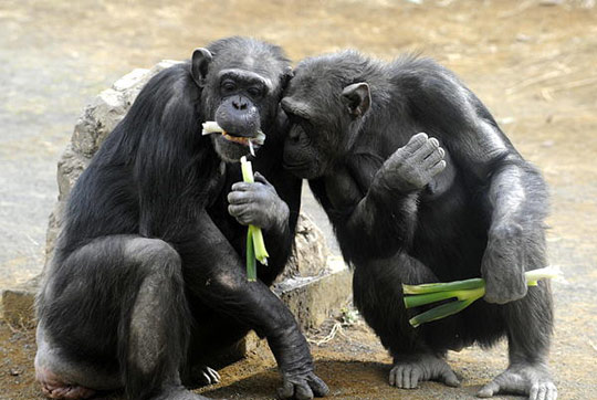 趣圖:動物園里黑猩猩吃大蔥預防感冒