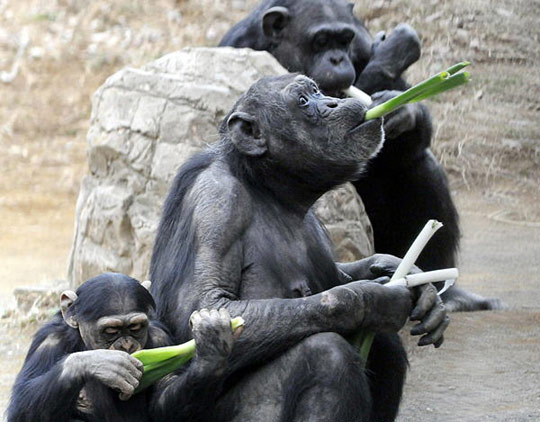 趣圖:動物園里黑猩猩吃大蔥預防感冒(2)