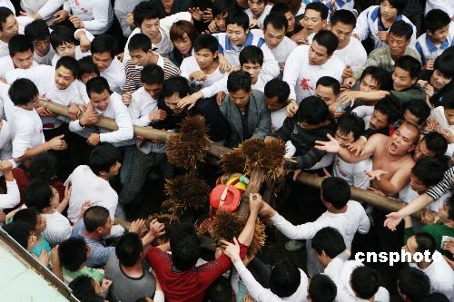 2月16日,農歷正月二十二,廣東汕頭市鹽灶村舉行獨特的傳統“搶財神”活動。活動中,一些被挑選出來的村民將廟里的神像抬出來游行,其他村民則競相涌上前觸摸甚至奪取、拖行神像。按照村里的老話:“老爺公喜歡拖,越拖越興旺。”這一獨特盛會吸引了數千人前來助威觀看,比過春節還熱鬧。