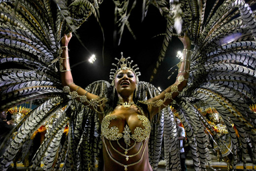 2月22日,巴西圣保羅,身穿華麗服飾的狂歡者在盡情舞蹈。