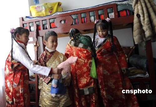 2月24日,中國藏歷年三十,拉薩SOS兒童村的藏族孤兒穿上新衣,迎接藏歷新年。拉薩市郊堆龍德慶縣乃瓊鎮(zhèn)的中國拉薩SOS兒童村,由民間慈善機構“國際SOS兒童村組織”無償援建,目前共收養(yǎng)包括仁青多吉在內(nèi)的181名藏族孤兒,他們與17位單身媽媽一道組成17戶家庭。中新社發(fā) 廖攀 攝