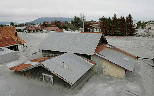 2月26日,在智利首都圣地亞哥以南1200多公里的柴滕市,城市街道被火山灰覆蓋。