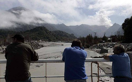 2月26日,在智利首都圣地亞哥以南1200多公里的柴滕市,當(dāng)?shù)鼐用裼^看噴發(fā)煙霧的柴滕火山。佩德羅·門(mén)多薩 攝