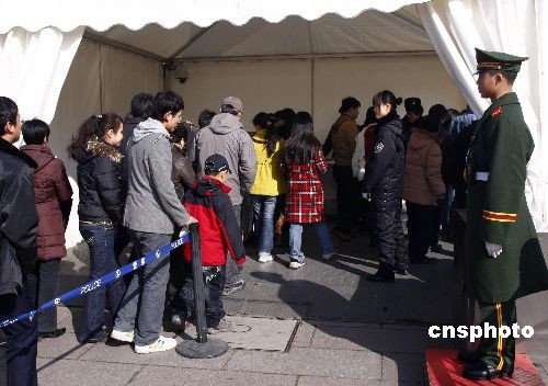 2月27日,全國“兩會”即將召開,北京天安門廣場加強安檢工作。中新社發(fā) 鄭雄增 攝